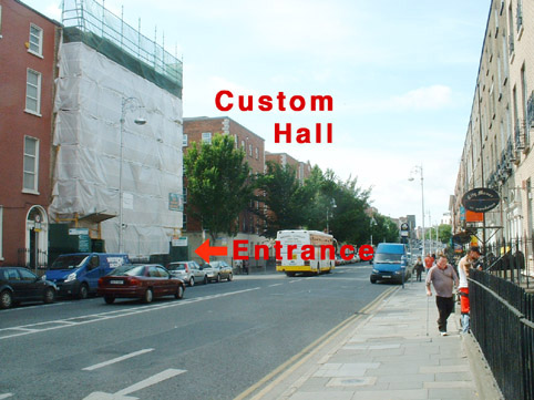 Image above shows vehicle entrance to Custom Hall, viewed from the corner of Talbot street and Gardiner street (looking north).