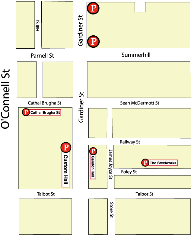Locations of parking spaces available on Gardiner Street, Dublin 1